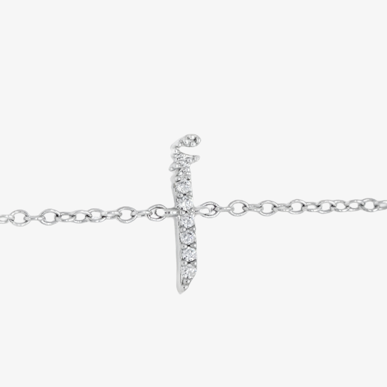 A striking 18K white gold piece featuring the Arabic letter “Alif,” A delicate and personalized bracelet that holds sentimental meaning.